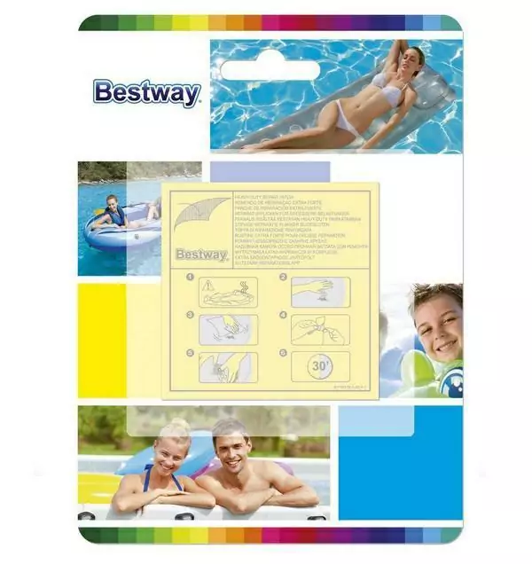 Zestaw 10 wodoodpornych łatek naprawczych Bestway 62068 to niezawodne rozwiązanie w przypadku uszkodzeń nadmuchiwanych basenów, materacy i zabawek. Każda łatka o wymiarach 6,5 x 6,5 cm posiada warstwę samoprzylepną, dzięki czemu ich aplikacja jest szybka i wygodna. Produkt idealny na awaryjne sytuacje, zapewnia trwałe uszczelnienie i pozwala szybko wrócić do letniej zabawy w wodzie.