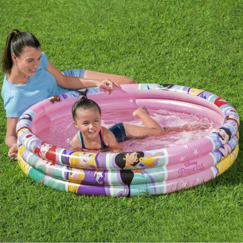 Basen dmuchany Bestway 91047 Disney Princess o wymiarach 122x25 cm to idealna propozycja na letnie zabawy dla dzieci powyżej 3. roku życia. Wykonany z trwałego winylu, zachwyca bajkową grafiką z księżniczkami i intensywnym różowym kolorem. Okrągła konstrukcja jest lekka i łatwa do rozłożenia, a pojemność 140 litrów sprawia, że świetnie sprawdzi się w ogrodzie lub na plaży.