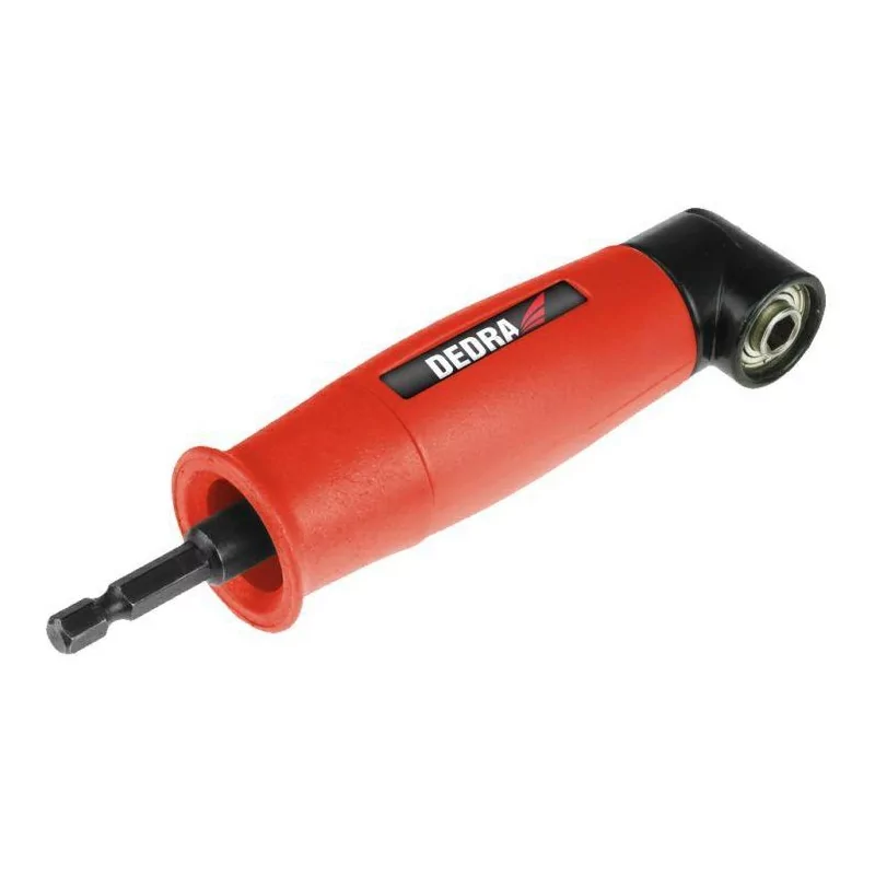 Uchwyt kątowy do bitów 1/4" Dedra 18A1004 to specjalistyczna przystawka kątowa do wkrętarki, zaprojektowana do efektywnego wkręcania śrub w trudno dostępnych miejscach. Wykonany z wytrzymałej stali CrV, adapter jest przystosowany do pracy z maksymalną prędkością 3000 obr./min i obsługuje obroty w lewo oraz w prawo, co gwarantuje jego wszechstronność i niezawodność.