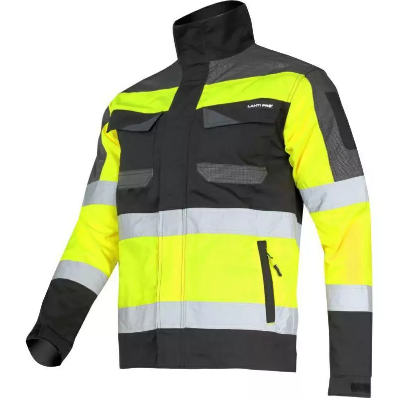 Kurtka ostrzegawcza czarno-żółta 3XL Lahti L4041106 to doskonała propozycja dla osób poszukujących nowoczesnej, funkcjonalnej odzieży roboczej. Wykonana z wysokiej jakości materiałów, łączy w sobie unikalny design i ergonomiczny krój w linii „slim fit”, co gwarantuje nie tylko komfort noszenia, ale także estetyczny wygląd. Dzięki zastosowaniu mieszanki 35% bawełny i 65% poliestru, kurtka ta zapewnia maksymalną trwałość oraz wygodę w trakcie pracy.