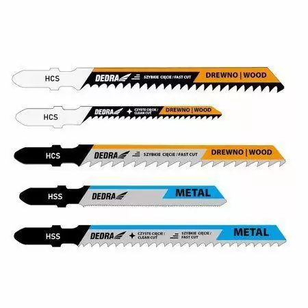 Zestaw brzeszczotów do wyrzynarki Dedra 08T001 to kompletny pakiet pięciu ostrzy, zaprojektowany z myślą o profesjonalistach i majsterkowiczach poszukujących niezawodnych akcesoriów do wyrzynarek. Dobór odpowiedniego ostrza jest kluczowy dla efektywności pracy, a ten zestaw brzeszczotów do wyrzynarki 5 sztuk gwarantuje precyzję i wszechstronność. Jako brzeszczoty HCS, wykonane ze stali wysokowęglowej, są one dedykowane do obróbki miękkich materiałów, zapewniając optymalne rezultaty cięcia.