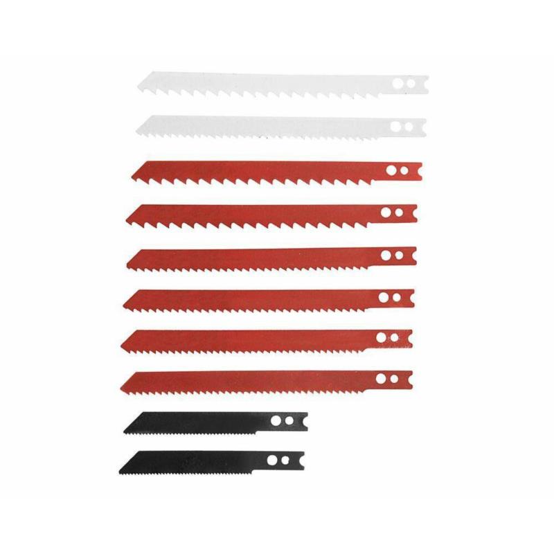 Ten wszechstronny zestaw brzeszczotów Verto 64H110 został zaprojektowany z myślą o maksymalnej wydajności i uniwersalności. Każdy brzeszczot wchodzący w skład kompletu jest zoptymalizowany do cięcia konkretnego materiału, co gwarantuje czyste i precyzyjne cięcie bez wysiłku. Uchwyt typu U (U-shank) to sprawdzony standard, który zapewnia szeroką kompatybilność z wieloma modelami wyrzynarek dostępnymi na rynku. Dzięki temu, że w zestawie znajduje się 10 sztuk brzeszczotów, użytkownik otrzymuje kompletne rozwiązanie do większości zadań, od prostych prac w drewnie po bardziej wymagające cięcie metalu.