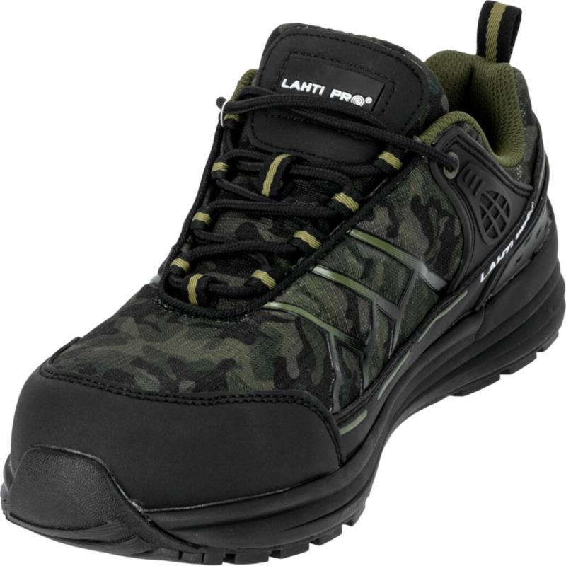Półbuty Lahti L3040842 w kategorii OB FO SRA to idealne obuwie robocze, wykonane z nubuku i siatkowej dzianiny, zapewniające wentylację. Dzięki gumowej podeszwie o nowoczesnym wzornictwie oraz głębokiemu protektorowi gwarantują stabilność i odporność na olej napędowy oraz poślizg. Certyfikat CE oraz norma ISO 20347:2011 potwierdzają wysoką jakość i bezpieczeństwo użytkowania. Wymienna wyściółka podnosi komfort.