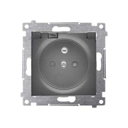 Gniazdo wtyczkowe pojedyncze do wersji IP44 - z uszczelką do ramek Premium - klapka w kolorze transparentnym do ramek Premium (moduł) 16A 250V, zaciski śrubowe, czarny mat, Simon 54