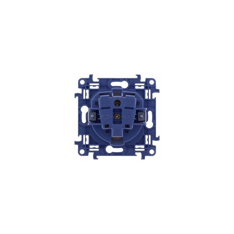To gniazdo elektryczne pojedyncze zostało zaprojektowane do pracy z prądem znamionowym 16A i napięciem 250V, co czyni je odpowiednim dla większości urządzeń domowych i biurowych. Montaż przewodów odbywa się za pomocą solidnych zacisków śrubowych, które gwarantują stabilne i pewne połączenie. Gniazdo wykonano z wysokiej jakości tworzywa PC bezhalogenowego, co zwiększa bezpieczeństwo pożarowe. Posiada stopień ochrony IP20, co oznacza, że jest przeznaczone do zastosowań wewnętrznych, a jego montaż podtynkowy w standardowej puszce jest szybki i prosty dzięki zastosowaniu pazurków lub wkrętów. Jako moduł, gniazdo wymaga dokupienia odpowiedniej ramki z serii Simon 10, co pozwala na tworzenie spersonalizowanych zestawów.
