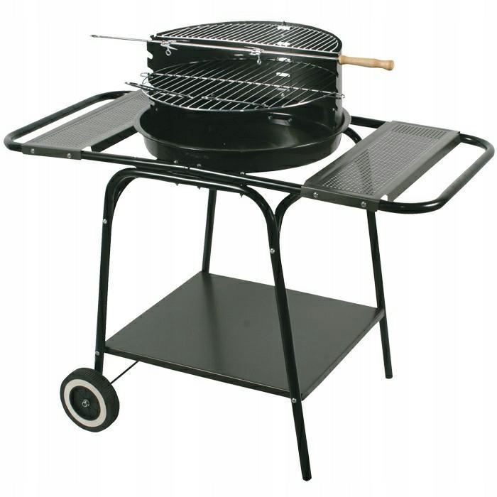Grill węglowy Master Grill&Party MG906 to praktyczny model z emaliowaną misą o średnicy 46,5 cm i chromowanym rusztem. Wyposażony w dwie boczne półki, dolną półkę na akcesoria oraz dwa kółka ułatwiające transport. Dodatkowo posiada owiewkę chroniącą przed wiatrem i szpikulec z drewnianą rączką. Idealny do grillowania w ogrodzie czy na działce.