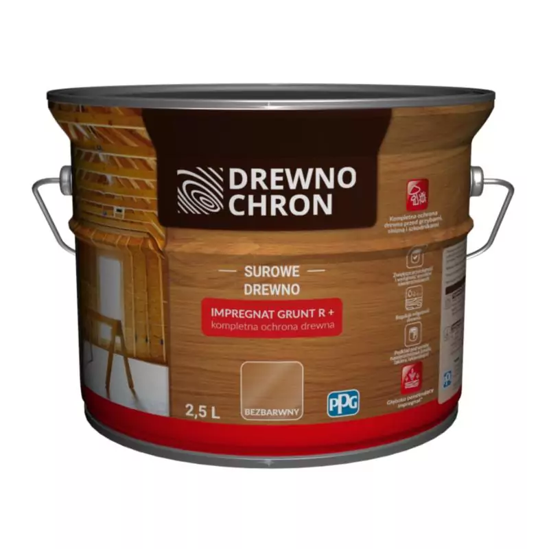Impregnat Grunt Bezbarwny 2,5L Drewnochron to wyjątkowy, głęboko-penetrujący preparat, stworzony do ochrony przedmiotów drewnianych, które są eksploatowane na zewnątrz oraz w pomieszczeniach wykorzystywanych sporadycznie. Zastosowanie tego impregnatu zapewnia skuteczną ochronę drewna przed szkodliwym działaniem czynników biologicznych.