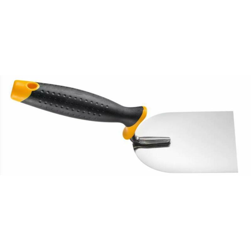 Ta niezwykle praktyczna kielnia sztukatorska charakteryzuje się końcówką roboczą, złożoną z dwóch prostopadłych płytek, wzmocnionych wspornikami, co zapewnia doskonałą stabilność i precyzję podczas pracy. Długość kielni wynosi 120 mm, a szerokość to 65 mm, co czyni ją doskonałym narzędziem do wykańczania kątów, zarówno wewnętrznych, jak i zewnętrznych. Oferowana kielnia sprawdza się przede wszystkim w wyrównywaniu zaprawy, umożliwiając uzyskanie gładkiej powierzchni, a w mniejszym stopniu przy jej nanoszeniu, co czyni ją wszechstronnym narzędziem w codziennej pracy budowlanej.