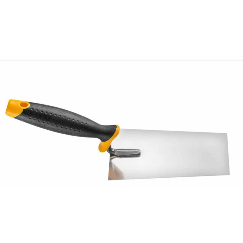 Wielofunkcyjna kielnia trapezowa 2K charakteryzuje się wyjątkowymi właściwościami. Jej wymiary to 12 cm x 8 cm, co sprawia, że jest idealna do precyzyjnych prac w trudno dostępnych miejscach. Rękojeść wykonana z dwukomponentowego materiału z powłoką antypoślizgową zapewnia wygodny chwyt i stabilność podczas pracy. Dzięki zastosowaniu stal nierdzewnej, kielnia jest odporna na wysokie temperatury i uszkodzenia mechaniczne. Solidne łączenie zgrzewem sprawia, że narzędzie jest w stanie znieść intensywne użytkowanie na placu budowy.