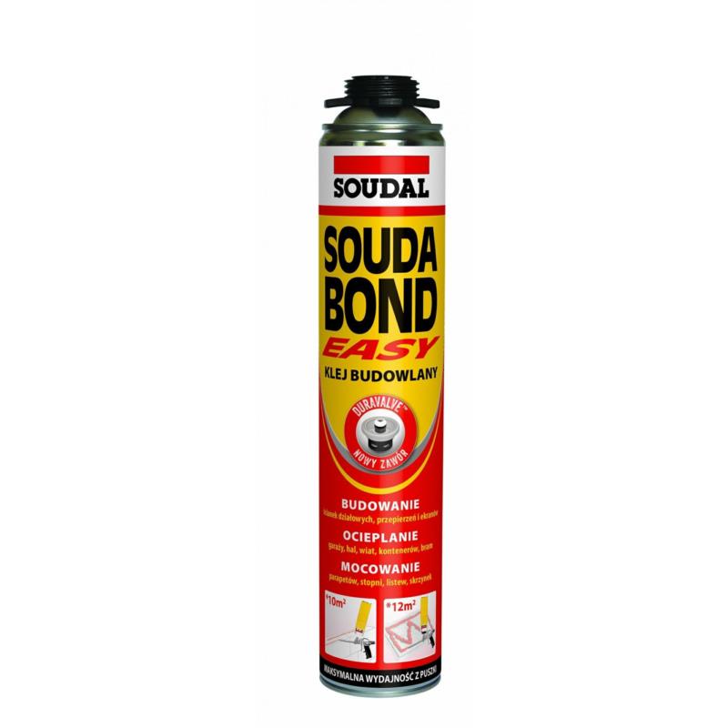 Soudal Soudabond Easy to szybkoschnący klej poliuretanowy w piance, przeznaczony do mocowania płyt G-K i paneli styropianowych, używany wewnątrz i na zewnątrz. Charakteryzuje się wysoką wydajnością, zapewnia izolację termiczną i akustyczną, oraz doskonałą przyczepność do wielu materiałów budowlanych.