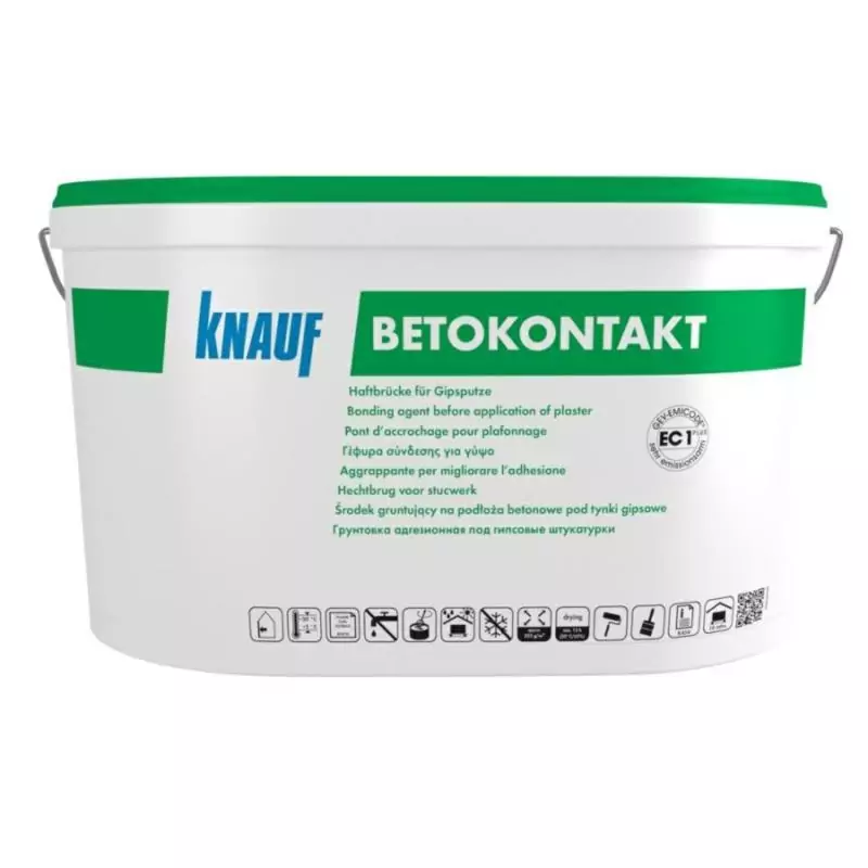 Grunt Knauf Betokontakt 5 kg to specjalistyczny preparat do gruntowania powierzchni betonowych przed tynkowaniem. Zapewnia doskonałą przyczepność zapraw tynkarskich, ułatwiając dalsze prace wykończeniowe. Nadaje się do zastosowania wewnątrz budynków na ścianach i sufitach. Gotowy do użycia po wymieszaniu, można nakładać pędzlem, wałkiem lub natryskiem. Idealny do podłoży o wysokiej chłonności.