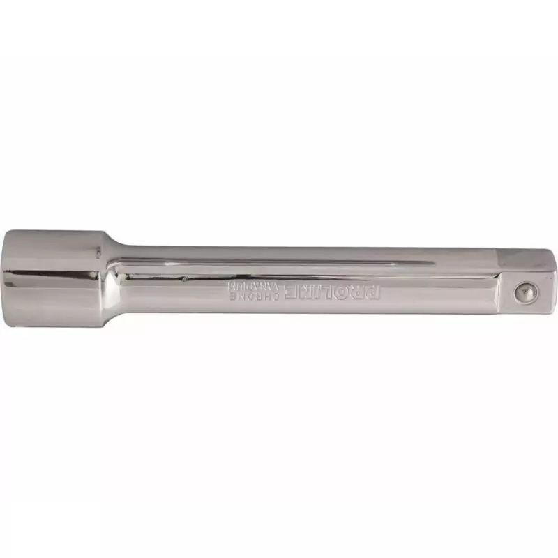 Przedłużka Proline ZR18553 została wykonana z wytrzymałej, polerowanej stali chromowo-wanadowej (CrV), co zapewnia jej wyjątkową odporność na korozję i uszkodzenia mechaniczne oraz gwarantuje długotrwałą żywotność. Kluczowym elementem konstrukcyjnym jest precyzyjnie wykonana kulka blokująca, która pewnie zabezpiecza nasadkę na trzpieniu, zapobiegając jej przypadkowemu zsunięciu się podczas intensywnej pracy. Przedłużka posiada z jednej strony kwadratowy trzpień napędowy 1/2 cala, a z drugiej gniazdo o tym samym rozmiarze, co czyni ją uniwersalnym narzędziem kompatybilnym z większością grzechotek i kluczy nasadowych dostępnych na rynku.