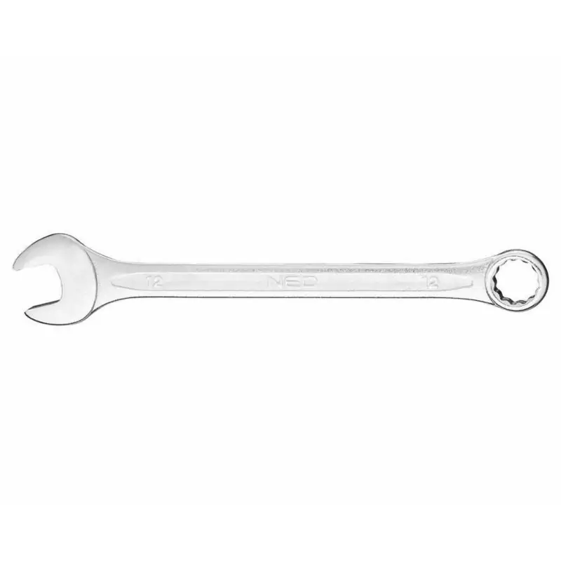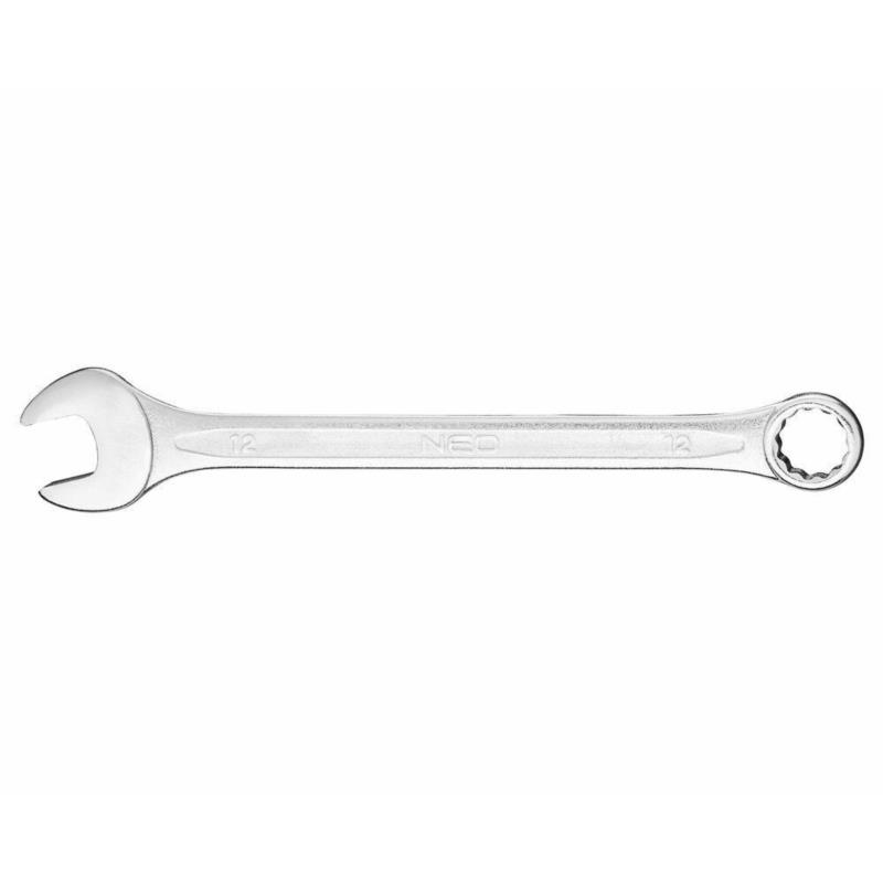 Klucz płasko-oczkowy 12mm Neo 09-009 to profesjonalne narzędzie warsztatowe, zaprojektowane do precyzyjnego odkręcania i dokręcania połączeń gwintowych. Wykonanie z wysokiej jakości stali chromowo-wanadowej (CrV) zgodnie z normą DIN 3113 zapewnia wyjątkową wytrzymałość i niezawodność, potwierdzoną 25-letnią gwarancją producenta.