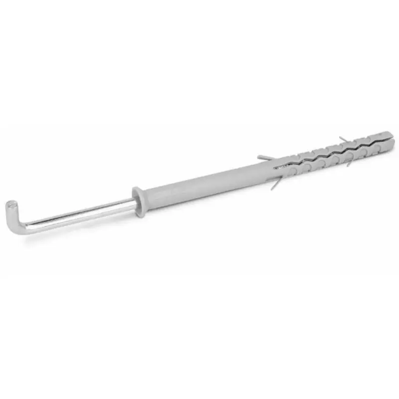 Kołek ramowy 10×160 mm z długą strefą rozporu i hakiem kątowym to uniwersalne mocowanie przeznaczone do aplikacji w wielu rodzajach podłoży. Specjalna konstrukcja koszulki zapewnia skuteczny rozpór, a solidny hak kątowy umożliwia bezpieczne podwieszanie i mocowanie różnego rodzaju elementów.