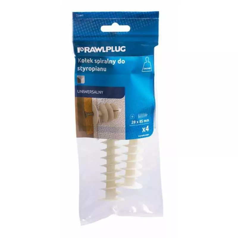 Kołek spiralny do styropianu 28/5 cm RawlPlug to niezawodne rozwiązanie do lekkiego montażu w izolacjach termoizolacyjnych. Wykonany z wysokiej jakości tworzywa sztucznego, gwarantuje trwałe mocowanie lekkich przedmiotów, takich jak skrzynki gazowe, tablice informacyjne czy czujniki ruchu. Łatwy w montażu poprzez wkręcanie, zapewnia doskonałą przyczepność i odporność na warunki atmosferyczne.