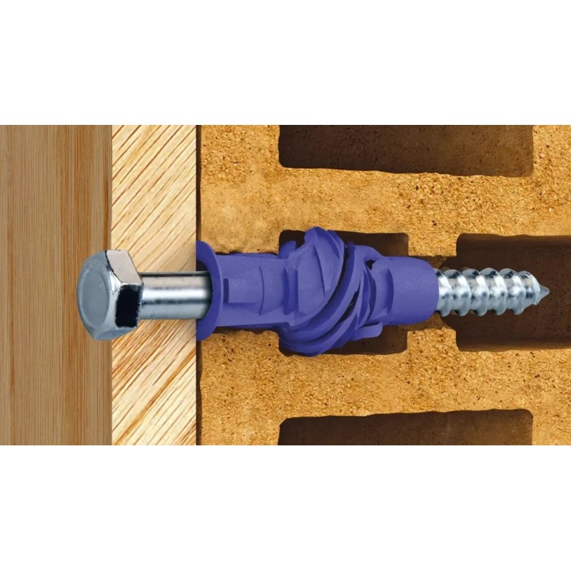 Ten nylonowy kołek rozporowy charakteryzuje się specjalnie zaprojektowaną linią podziału koszulki, której kształt zapewnia maksymalną powierzchnię styku po skręceniu, co jest kluczowe w podłożach z pustkami. Jego solidna konstrukcja gwarantuje niezrównaną wytrzymałość po zainstalowaniu. Dzięki skrzydełkom antyrotacyjnym, kołek 4ALL utrzymuje doskonałą przyczepność w szerokim zakresie podłoży. Unikalny sposób czterokierunkowego rozszerzenia oraz profil żebrowany wzmacniają stabilność instalacji, a także ułatwiają fasowanie wkręta w otworze. Kołek zostaje prawidłowo zamocowany przy zachowaniu stałego nacisku podczas dokręcania, co zapewnia jego efektywność oraz bezpieczeństwo przeprowadzonej instalacji.