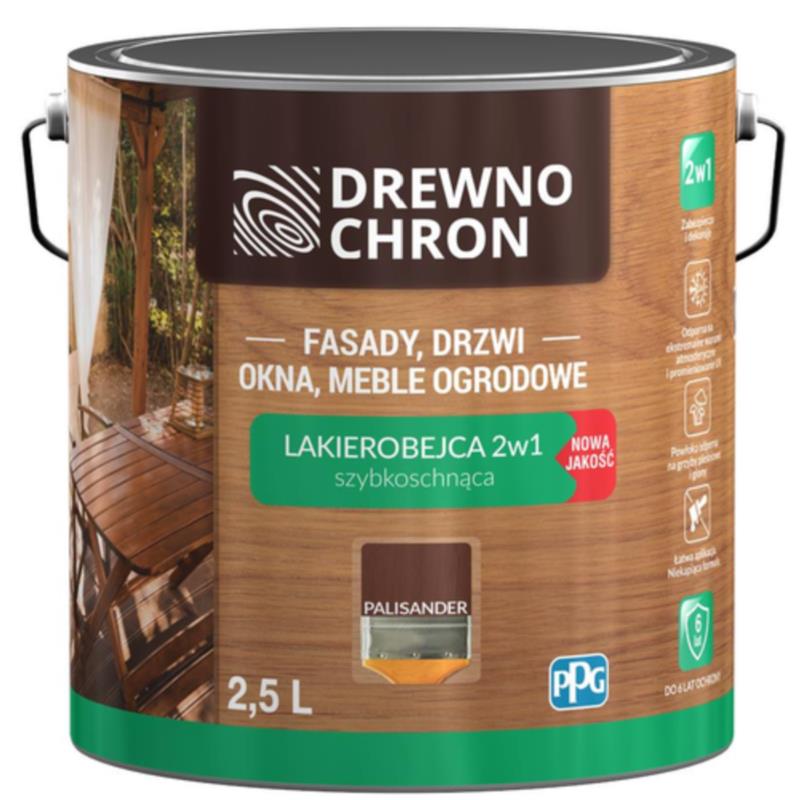 Drewnochron Lakierobejca 2W1 Palisander 2,5L to innowacyjny produkt do ochrony i dekoracji drewna zarówno wewnątrz, jak i na zewnątrz. Dzięki dwufunkcyjności zapewnia nie tylko elegancki kolor Palisander, ale także skuteczną ochronę przed warunkami atmosferycznymi i promieniowaniem UV. Aplikacja jest prosta, a wodna baza sprawia, że lakierobejca jest przyjazna dla środowiska. Idealny wybór dla długotrwałej ochrony drewnianych powierzchni.