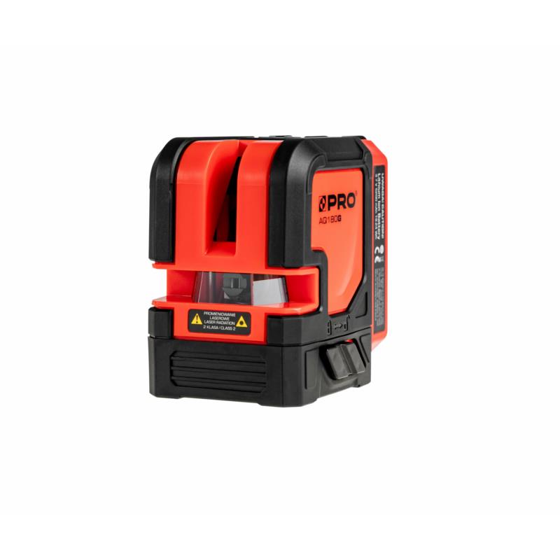 PRO-AQ180G wyróżnia się systemem samopoziomowania opartym na wahadle magnetycznym, co zapewnia precyzyjne ustalenie poziomu bez dodatkowych narzędzi. Klasa szczelności pomiędzy IP54 zapewnia ochronę przed kurzem i wodą, co czyni go idealnym do zastosowań w terenie. Urządzenie generuje dwie linie krzyżowe przecinające się pod kątem 90°, co umożliwia łatwe i szybkie wyznaczanie kątów oraz poziomów. Tryb manualny pozwala na blokadę wahadła, co jest przydatne przy wyznaczaniu skosów. Dodatkowym atutem jest możliwość montażu na statywie lub tyczce rozporowej z gwintem 1/4"" i 5/8"".