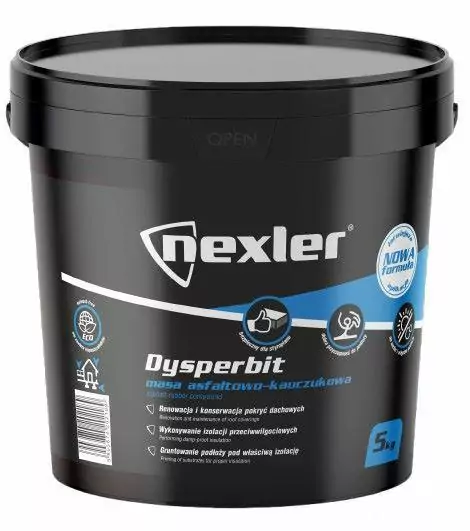 Produkt wyróżnia się doskonałą przyczepnością do podłoży mineralnych oraz papy, co zapewnia skuteczność izolacji. Możliwość aplikacji na suchych i matowo-wilgotnych podłożach czyni go uniwersalnym. NEXLER Dysperbit ma właściwości tiksotropowe, które ułatwiają aplikację, gwarantując równomierne rozprowadzenie. Jego bezrozpuszczalnikowy skład czyni go bezpiecznym w kontakcie ze styropianem, a odporność na czynniki atmosferyczne oraz spływanie zapewniają długoterminową trwałość oraz niezawodność w trudnych warunkach.