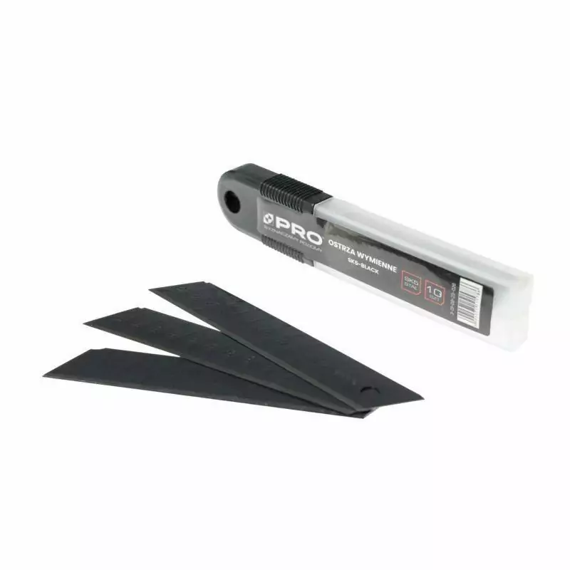 Ostrza wymienne SK5 BLACK 18mm 10szt Pro 3-01-08-25-026 to profesjonalne akcesoria do noży, przeznaczone do precyzyjnego cięcia w pracach remontowych i wykończeniowych. Wykonane z wysokogatunkowej stali węglowej SK5, gwarantują wyjątkową ostrość, trwałość i odporność na stępienie.