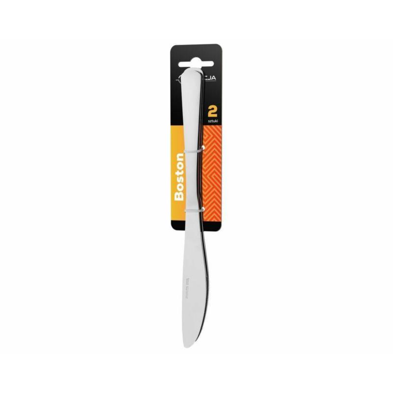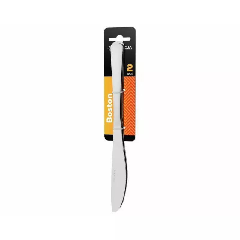 Nóż BOSTON 2 sztuki Galicja 8356 to elegancki komplet noży stołowych, stanowiący kluczowy element każdej profesjonalnej i domowej zastawy stołowej. Wykonane z połyskującej stali i charakteryzujące się perfekcyjnym wykończeniem oraz delikatnie zaobloną linią wzorniczą, zapewniają komfort użytkowania i wyjątkową estetykę nakrycia stołu.