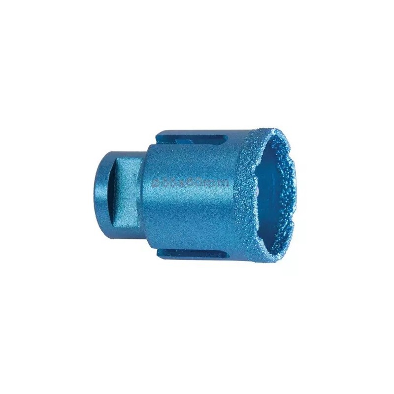 Koronka diamentowa o średnicy 55 mm z mocowaniem M14, wykonana w technologii vacuum brazed. Zapewnia wyjątkową trwałość dzięki trwałemu zespoleniu ziaren diamentu z korpusem narzędzia. Przeznaczona do wiercenia w betonie, cegle, szkle, asfalcie, laminatach, PCV, metalu i drewnie. Długość całkowita wynosi 60 mm, długość robocza 40 mm. Możliwa praca na sucho i na mokro.
