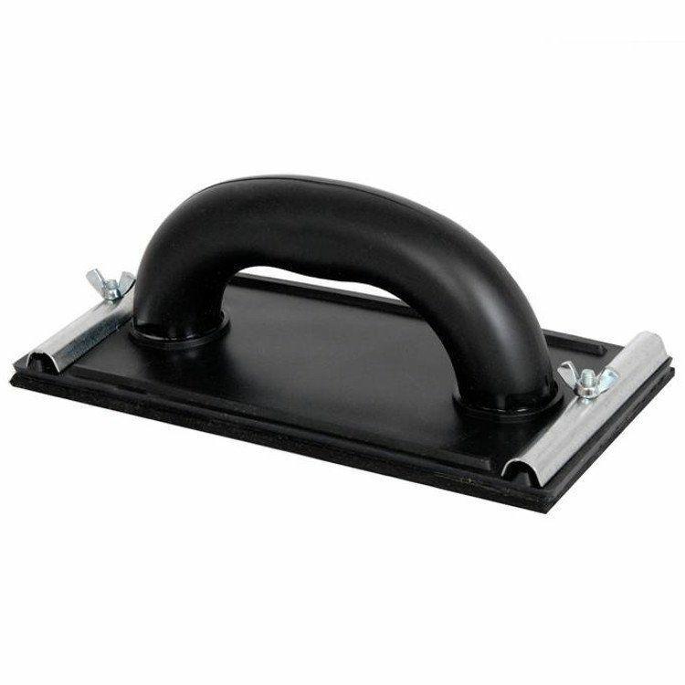 Blok ścierny o wymiarach 220x100 mm wykonany z tworzywa sztucznego. Materiał ścierny mocowany jest przy pomocy dwóch metalowych zacisków dokręcanych nakrętką motylkową.