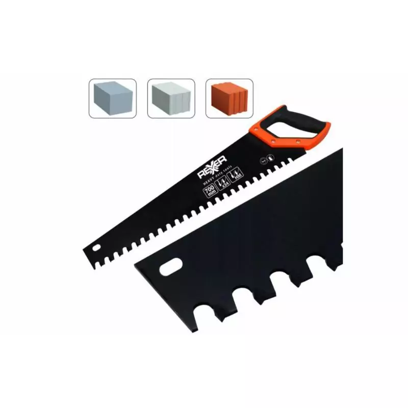 Piła do gazobetonu 700mm Rexxer RC-09-051 to specjalistyczne narzędzie ręczne, niezbędne do precyzyjzyjnego cięcia materiałów budowlanych. Dzięki optymalnej długości 700 mm i 34 zębom, gwarantuje ona efektywne i czyste cięcie bloczków z betonu komórkowego.
