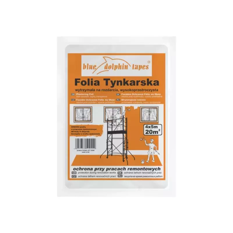 Folia tynkarska Blue Dolphin o wymiarach 4m x 5m, wykonana z polietylenu, zapewnia niezawodną ochronę powierzchni podczas prac tynkarskich, malarskich i remontowych. Transparentna i odporna na wilgoć oraz uszkodzenia mechaniczne, idealnie nadaje się do zabezpieczania mebli, okien i podłóg. Łatwa w montażu, folia ta jest niezbędnym elementem w każdej pracy budowlanej i remontowej.