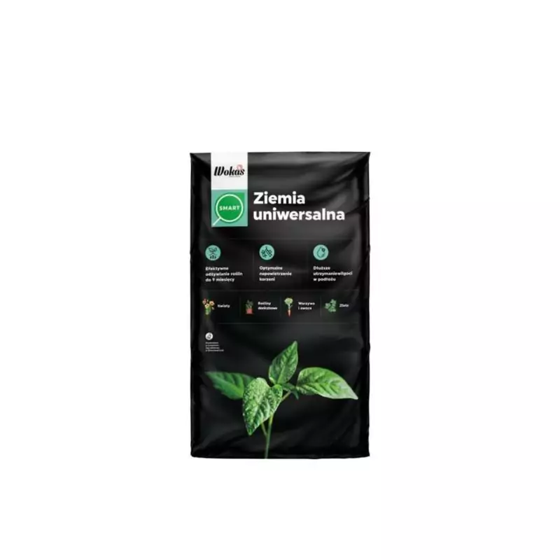 Ziemia uniwersalna Wokas Smart 20L to specjalistyczne podłoże, idealne do uprawy kwiatów, warzyw i roślin ozdobnych. Oparta na naturalnych składnikach, jak torf, perlit i kompost, poprawia właściwości gleby i utrzymuje odpowiednią wilgotność, co sprzyja zdrowemu wzrostowi roślin. Dzięki optymalnemu pH 5,5-6,5 oraz dodatkom wzbogacającym, stwarza idealne warunki dla korzeni. Wybierz Wokas Smart, aby zapewnić roślinom doskonałe warunki do rozwoju!