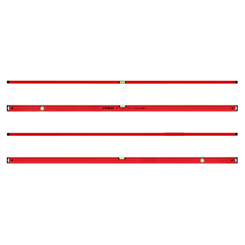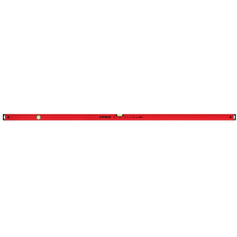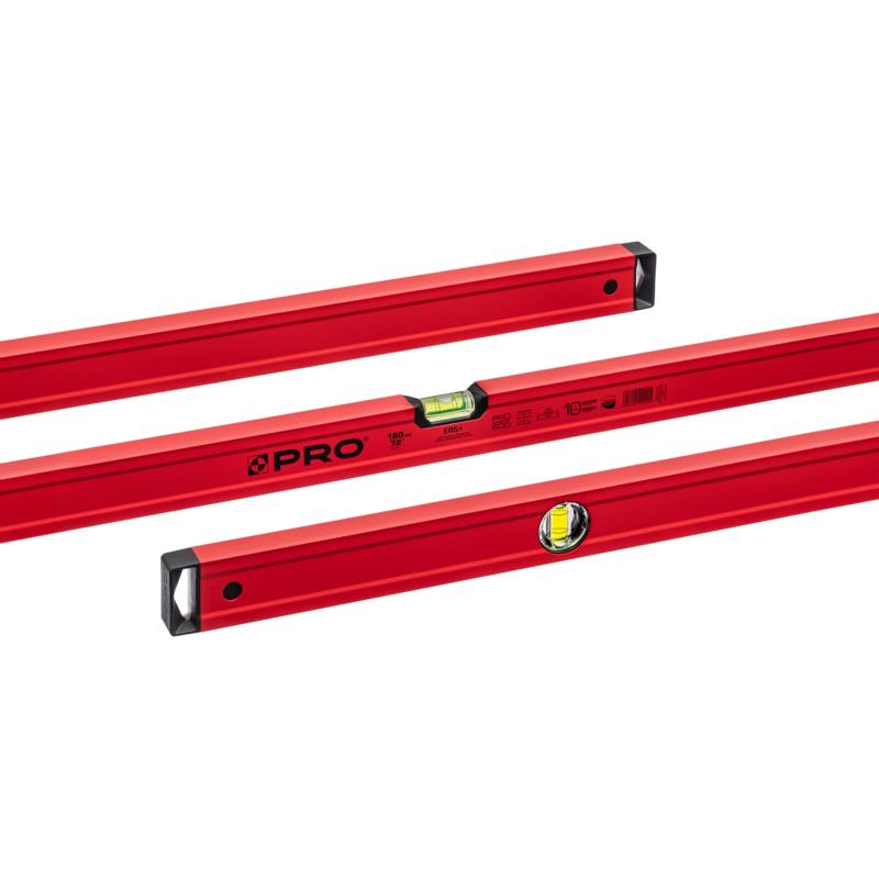 Poziomica czerwona 180 cm PRO600 PRO-A1180 to najczęściej wybierany model w Polsce, charakteryzujący się jednokomorowym profilem o wymiarach 49 x 22 mm, wzmacnianym przetłoczeniami dla większej sztywności. Dokładność 0,5 mm/m oraz system ERS+ umożliwiają łatwe odczyty. Masywne przetłoczenia boczne zapewniają pewny chwyt, a ANTI SHOCK CAP chroni po poziomnicy w razie upadku. Idealna dla profesjonalistów i majsterkowiczów.