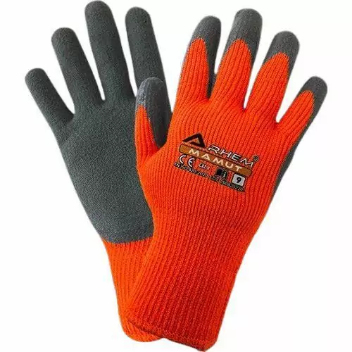 Rękawice robocze Mamut Arhem ARH 71 611 w rozmiarze 10 (XL) to zimowe, ocieplane rękawice ochronne wykonane z akrylowej dzianiny w kolorze pomarańczowym, powlekane szarym lateksem o porowatej strukturze. Zapewniają doskonałą przyczepność i komfort pracy w niskich temperaturach. Idealne do zastosowań w budownictwie, przemyśle oraz podczas prac ogrodowych.