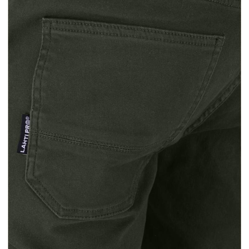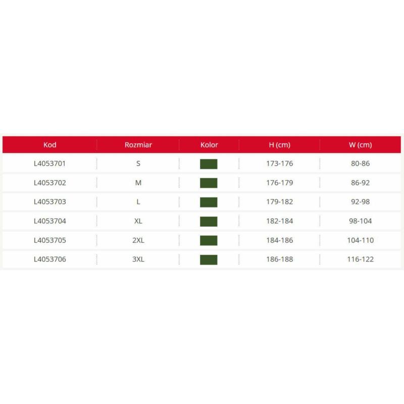 Spodnie joggery zielone stretch XXXL Lahti Pro L4053706 to idealna propozycja dla mężczyzn ceniących komfort i styl. Wykonane z bawełny (80%) z dodatkiem elastanu (2%), oferują doskonałą elastyczność i wygodę noszenia. Trwały materiał o gramaturze 415 g/m2 oraz sześć praktycznych kieszeni, w tym dwie zapinane na napy, sprawiają, że joggery są funkcjonalne. Dodatkowo, regulowany ściągacz w pasie oraz nogawki z ściągaczem eksponują obuwie.