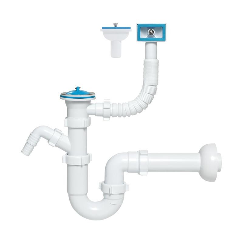 Funkcjonalny syfon zlewozmywakowy pojedynczy z sitkiem 70 mm – wykonany z trwałego tworzywa sztucznego, z metalowym sitkiem o średnicy 70 mm oraz wyjściem na pralkę lub zmywarkę. Uniwersalny model pasuje do większości zlewozmywaków, zapewnia skuteczne odprowadzanie wody i ochronę instalacji przed zanieczyszczeniami. Łatwy w montażu i czyszczeniu — idealne rozwiązanie do kuchni domowej.