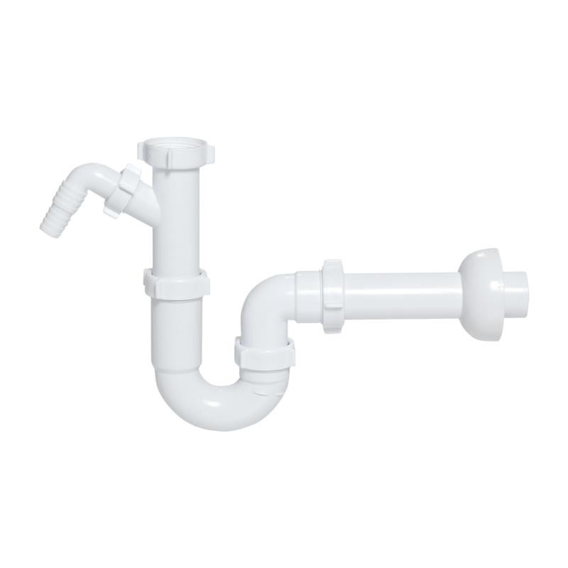Funkcjonalny syfon zlewozmywakowy rurowy pojedynczy bez spustu – wykonany z trwałego tworzywa sztucznego, z wyjściem do podłączenia pralki lub zmywarki. Uniwersalna konstrukcja pasuje do większości zlewozmywaków, montaż bez spustu ułatwia instalację w kuchni lub pomieszczeniu gospodarczym. Gładka powierzchnia wewnętrzna zapobiega zatorom, uszczelki gumowe zapewniają szczelność, a wysokiej jakości materiały gwarantują długą żywotność.