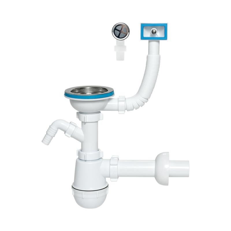 Solidny syfon butelkowy 115 mm z przelewem prostokątnym marki Tycner – wykonany z wysokiej jakości polipropylenu, z wyjściem do pralki oraz prostokątnym przelewem. Ścianki odporne na osadzanie kamienia i tłuszczu, uszczelki gwarantujące szczelność. Uniwersalna konstrukcja pozwala montaż do większości zlewozmywaków. Produkt objęty 10-letnią gwarancją producenta.