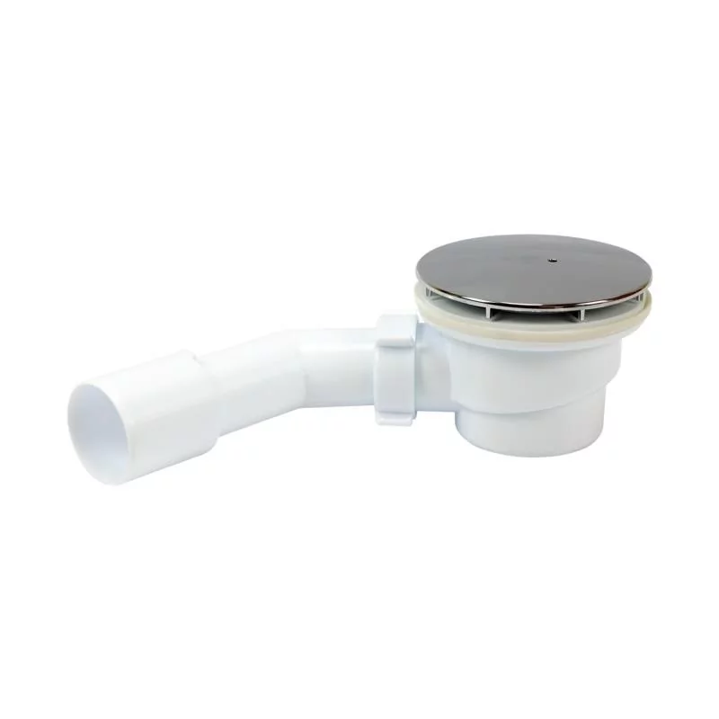 Syfon brodzikowy 90 mm chrom, czyszczony od góry — wykonany z trwałych tworzyw odpornych na wysoką temperaturę, z gładką powierzchnią ułatwiającą czyszczenie. Wysokość urządzenia wynosi 71 mm, a zestaw zawiera kolanko odpływowe redukcyjne 40/50 mm. Montaż prosty, konstrukcja funkcjonalna — dobry wybór do kabin prysznicowych z odpływem 90 mm.