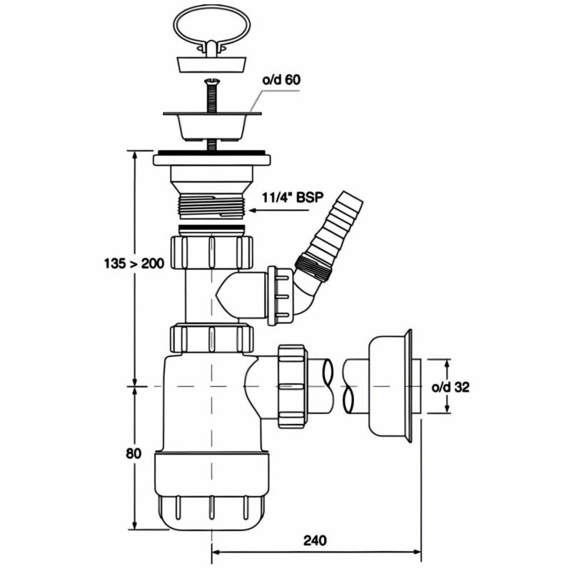 Syfon umywalkowy butelkowy niski McAlpine HC1LWM to kompaktowe rozwiązanie o wymiarach 1 1/4" × 32 mm, zaprojektowane z myślą o oszczędności miejsca w małych łazienkach. Wyposażony w sitko ze stali nierdzewnej, gumowy korek oraz wyjście na podłączenie pralki lub zmywarki, zapewnia przepustowość 34 l/min przy słupie wody 120 mm. Wykonany z trwałego polipropylenu — doskonały do nowoczesnych aranżacji wnętrz.