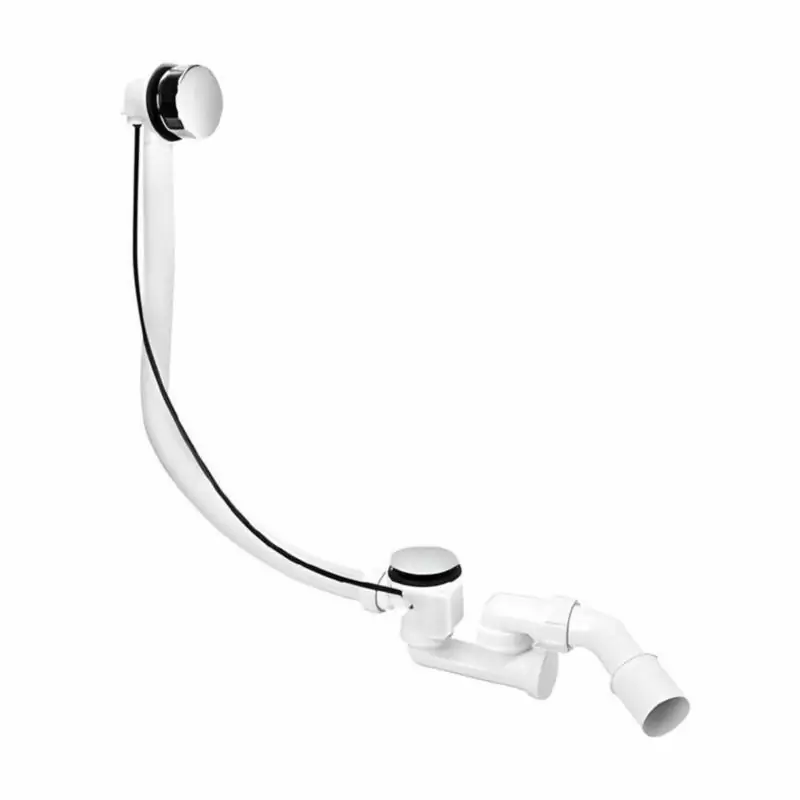 Kompletny zestaw odpływowo-przelewowy HC31M-N1 marki McAlpine – odpływ 1 1/2" × 40/50 mm, linka 700 mm i rurka przelewowa 570 mm. Pokrętło z trwałego tworzywa ABS oraz bokowa rewizja ułatwiają konserwację. Wykonany z polipropylenu, wykończenie chrom („CP”). Idealny do wanny lub głębokiego brodzika: gwarantuje sprawne odprowadzanie wody, wygodny dostęp do czyszczenia i trwałe działanie.