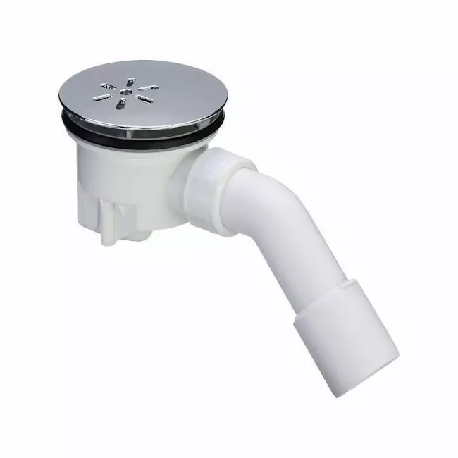 Viega Syfon brodzikowy 90 mm czyszczony od góry, chrom — to praktyczne rozwiązanie dla kabin prysznicowych z odpływem 90 mm. Wyposażony w chromowany kołpak 115 mm oraz syfon wyjmowalny z łukiem odpływowym 45° i wysokością zamknięcia wodnego 50 mm. Produkt wykonany z trwałego tworzywa, przystosowany do płytszych brodzików i zapewniający łatwy dostęp do czyszczenia.