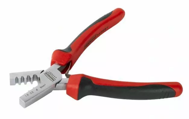 Szczypce do zaciskania końcówek izolowanych i nieizolowanych. Wysokogatunkowe szczęki ze stali hartowanej, blokujący system zapadkowy i regulacja siły docisku zapewniają komfortową i skuteczną pracę przy instalacjach elektrycznych.