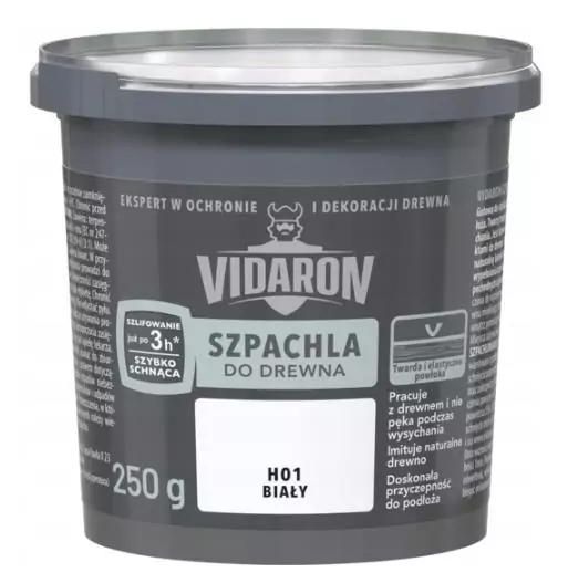Szpachla do Drewna Biała 0,25L Vidaron doskonale wypełnia ubytki i pęknięcia w drewnie, zapewniając wysoką przyczepność i odporność na warunki atmosferyczne. Gładka konsystencja ułatwia aplikację, a szybkie schnięcie pozwala szybko przystąpić do szlifowania. Może być stosowana zarówno wewnątrz, jak i na zewnątrz. Skutecznie przywraca gładką powierzchnię, gotową do malowania. Idealna do naprawczej i ochronnej obróbki drewna.