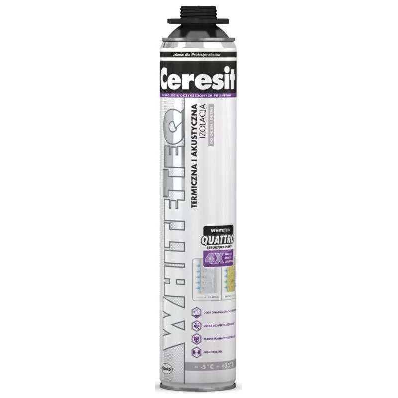 Biała piana poliuretanowa o wyjątkowych parametrach roboczych Jednoskładnikowa biała piana poliuretanowa o 4 x bardziej zwartej strukturze, optymalnej niskoprężności, ultra dźwiękoszczelności i maksymalnej trwałości.