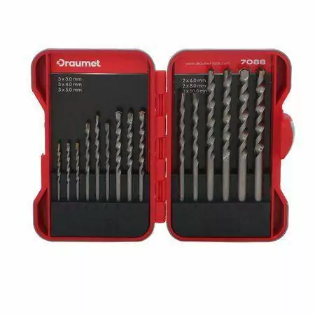 Wiertła do betonu 3-10mm Draumet to profesjonalny zestaw akcesoriów przeznaczony do precyzyjnego wiercenia w twardych materiałach budowlanych. Dzięki szerokiemu zakresowi średnic od 3 do 10 mm, jest to idealne rozwiązanie do większości standardowych prac montażowych i instalacyjnych w betonie.