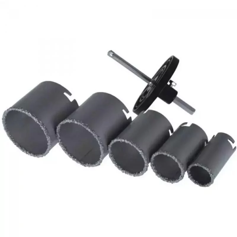 Zestaw koronek węglikowych 33, 43, 53, 67, 73mm Dedra DED1517 to profesjonalny komplet otwornic, stworzony do precyzyjnego wykonywania otworów w szerokiej gamie materiałów budowlanych. Dzięki zastosowaniu wytrzymałych końcówek z węglików spiekanych, zestaw gwarantuje efektywne wiercenie na sucho bez konieczności użycia udaru, co jest kluczowe przy pracy z kruchymi materiałami.