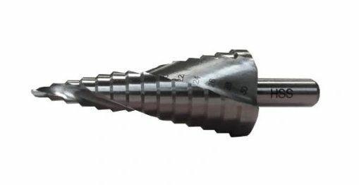 Prezentowane wiertło stopniowe 4-30mm charakteryzuje się stożkową budową z wyraźnie zaznaczonymi stopniami, co umożliwia płynne wiercenie otworów o średnicach w zakresie od 4 mm do 30 mm. Taka konstrukcja eliminuje potrzebę wstępnego nawiercania i pozwala na jednoczesne centrowanie, wiercenie oraz gratowanie krawędzi otworu, działając jak gradownik. Dzięki temu obróbka metalu staje się szybsza i bardziej efektywna, a jedno narzędzie zastępuje cały zestaw wierteł, co jest kluczową zaletą wiertła stopniowego.