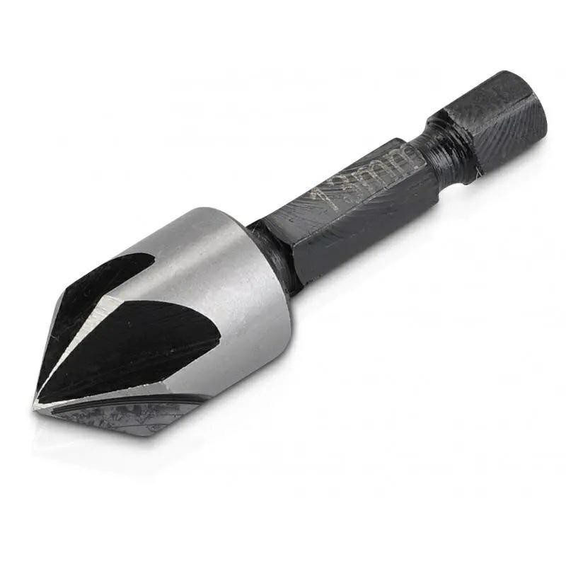 Pogłębiacz stożkowy fazownik do drewna 13mm Kreator KRT011202 to profesjonalne narzędzie do fazowania i pogłębiania otworów pod śruby stożkowe. Wykonany z wysokiej jakości stali węglowej i wyposażony w pięć ostrzy tnących oraz uchwyt HEX 1/4", zapewnia precyzyjne i czyste wykończenie otworów w drewnie i miękkich materiałach.