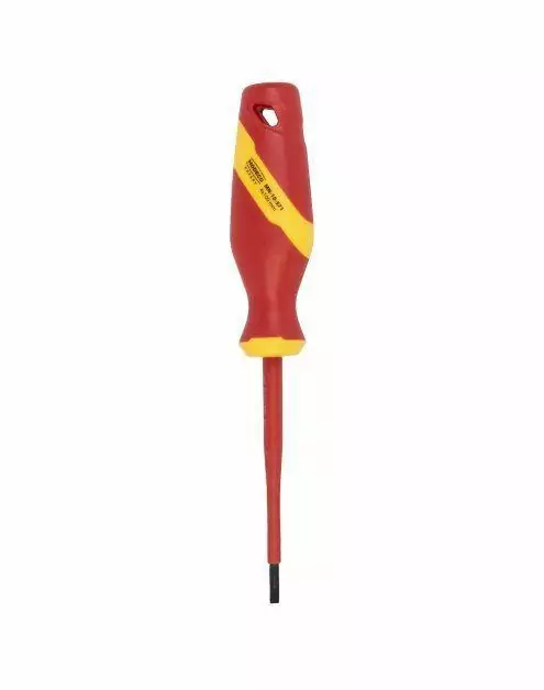 Profesjonalny wkrętak VDE SLIM 4,0×100 mm przeznaczony do prac elektroinstalacyjnych, umożliwiający wygodne operowanie w trudno dostępnych miejscach. Wysokiej jakości grot S2 oraz pełna izolacja VDE zapewniają bezpieczeństwo i precyzję pracy.