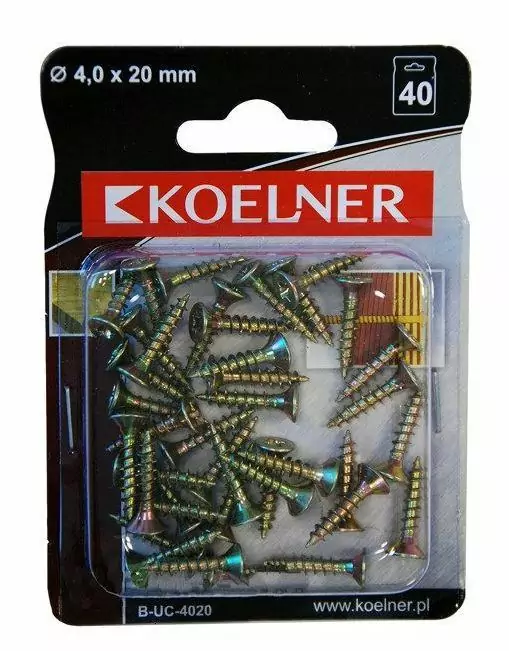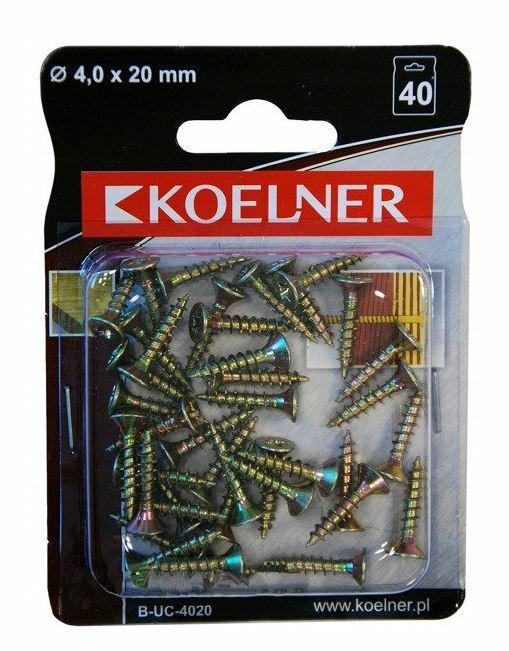 UC Wkręty hartowane z łbem stożkowym 4x20 mm Srebrny - blister - 40 szt. KOELNER