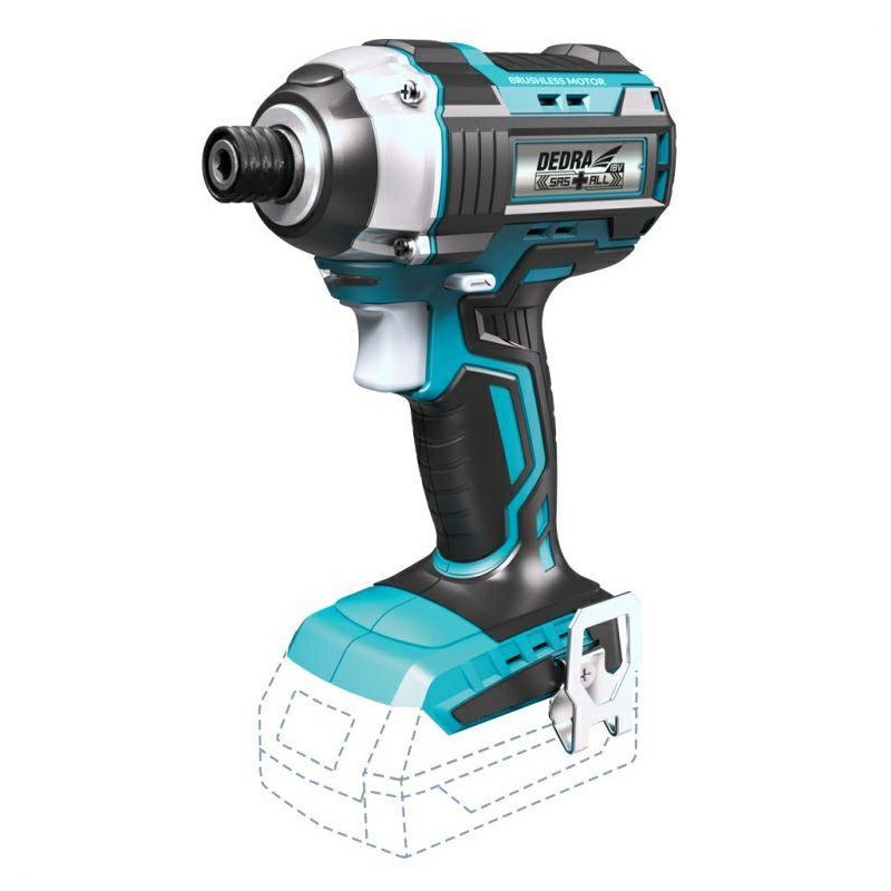 Zakrętarka udarowa 18V 200Nm Dedra DED7145 to profesjonalny klucz udarowy akumulatorowy z linii SAS+ALL, stworzony do intensywnych prac montażowych w warsztacie i na budowie. Wyposażona w nowoczesny silnik bezszczotkowy, gwarantuje znacznie wyższą wydajność, dłuższą żywotność oraz wysoki moment obrotowy na poziomie 200Nm.